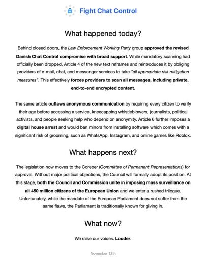 Edit: sent some emails and even called some of my MEP’s as well as the Danish ministry of justice (that was a weird conversation, but satisfying to do)