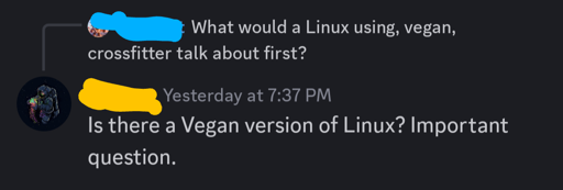 minus-squarerobobrain@programming.devlinkfedilinkarrow-up2·7 months agoNo Linux distro can be vegan because none of them can be produced without any suffering
