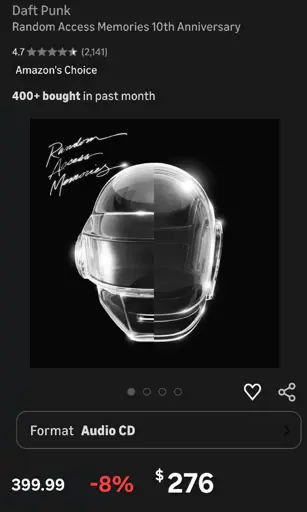 Alt Alt Text: The Daft Punk album Random Access Memories (RAM) selling for $276, a good deal since it’s usually $399.99.