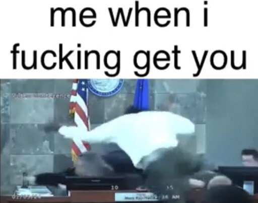minus-squaresnake@lemmy.worldlinkfedilinkarrow-up10·edit-23 months agoI think it’s from that viral video in which a guy standing trial launches himself on the judge.