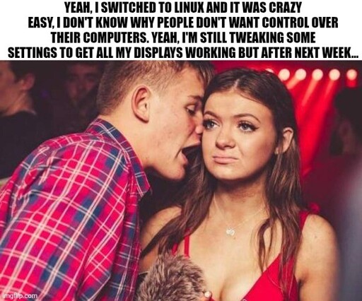 I’d posit Linux is still far superior. Especially with stupid little things, like one of my displays acts like it’s fully disconnected when it’s powered off at night. Which then tells Windows to disconnect the screen and fuck up all my app positions regardless of wether, “remember window positions based on connected screens” or what ever is set. It takes many seconds for that asshole to reinitialize the whole fucking desktop, always with programs in the wrong fucking place. Every. Time.