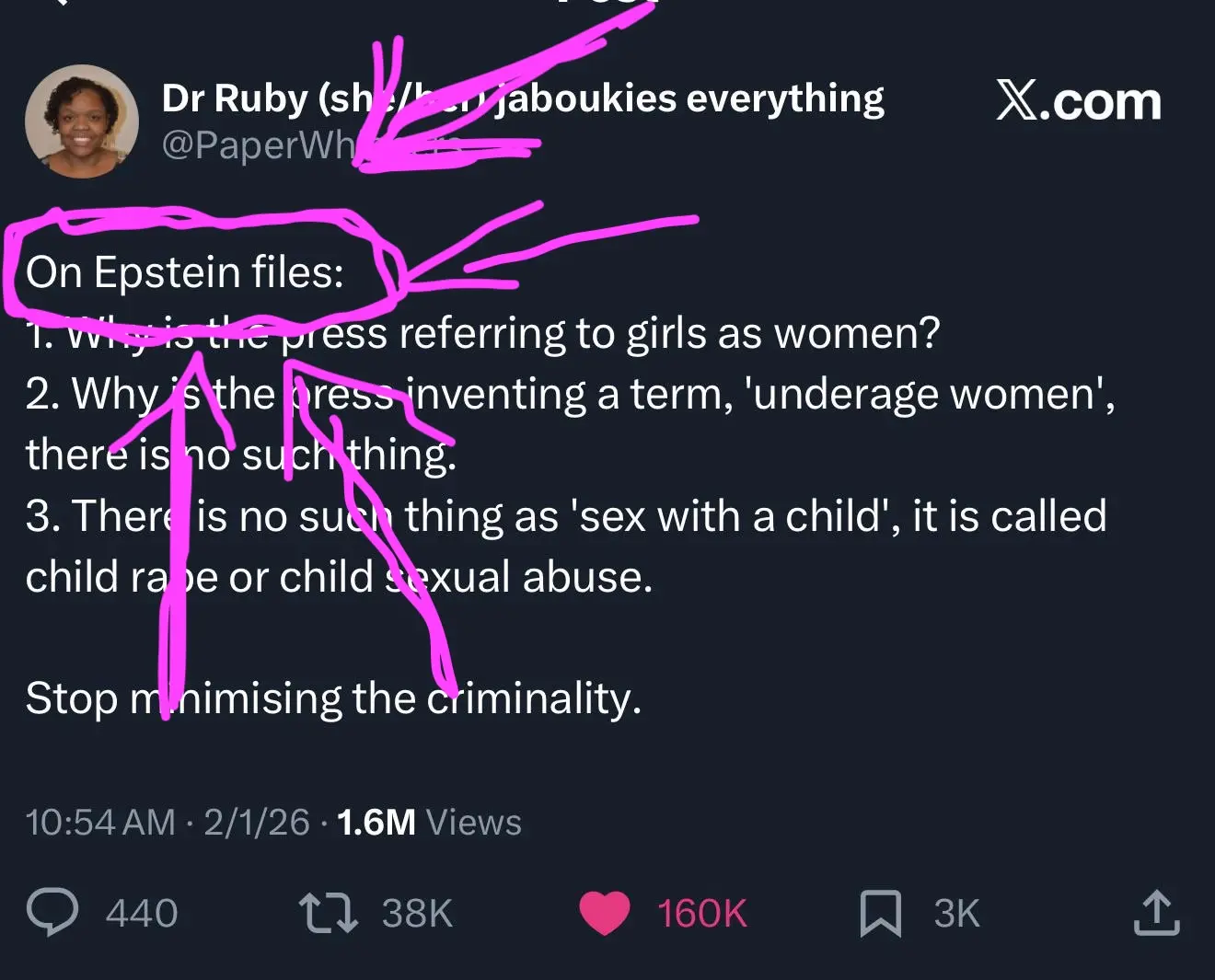 I see the problem here. Read the original post. Like click on the picture. The post is about journalist making up thier own terminology which in their opinion is to intentionally minimize the criminality of the actions. It is really complaining about the reporting, not the crimes themselves. It bigger than just the epstein files. And it is rampant in all reporting on rape cases.