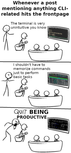 Are there people who are mad at other people for using the terminal? Is this really a thing that exists?