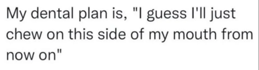 And thats how I had all my teeth pulled before age 35! My ability to eat improved and now it’ll cost me tens of thousands in debt to get anything functional in their place!