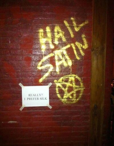 Whoever drew it is definitely a fake Satanist/poser. An upright pentagram represents the opposite of a downward one. The Satanic Bible explains why Anton LaVey chose to use an inverted pentagram in the Sigil of Baphomet.