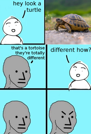 I don’t seem to ever get corrected, chewed out, or bitched at when I call the animal with shell and legs a turtle, and I talk about turtles a lot. More than you’d ever know.