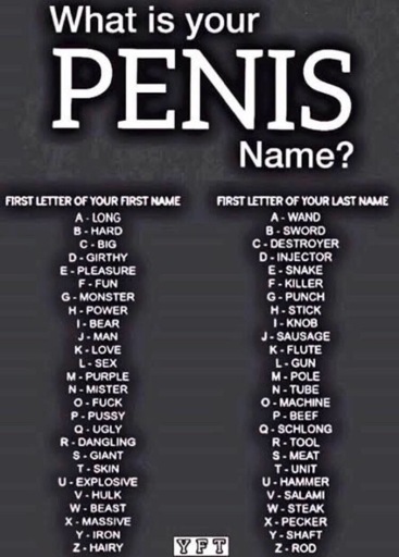 For my username(s): GirthyWand. Alternatively: Sex knob | Giant hammer.