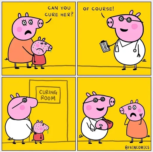 Haha, he killed the Peppa Pig! Get it?? Because WE kill pigs too and eat them. So funny, right!? A dead pig like the millions of others, haha! Now I want a sandwich, haha!