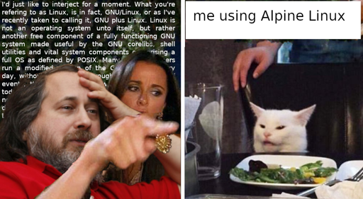 And that’s why Alpine should be considered harmful. Copyleft is important, folks! musl and BusyBox are just ways to facilitate even more enshittification, Tivoization, and other corporate abuse than the GPLv2 kernel already does by itself.