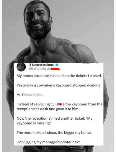 This is 100% correct in the IT world. I have a split IT dept due to mergers (its a whole thing, people are fighting to not give up knowlage on systems so their position looks useful to mgmt… its fucked) and the other side of the fence are the most useless window-lickers ever because their tier 1 just closes things almost at random to bump their numbers up.