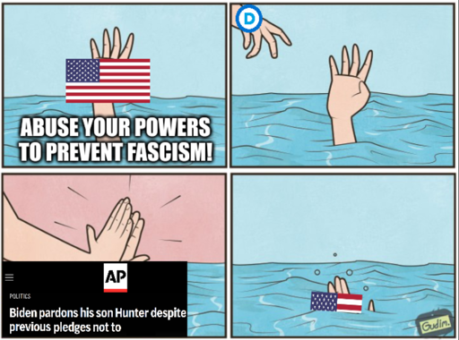Here is the only issue I have with the pardon. Once Kamala lost, Biden should have started to go hog wild with last minute shenanigans in order to give Americans things they actually need. Instead he decided to pardon Hunter a full month before leaving office rather than helping us out and doing the pardon on the last day. Now, even if he does do things that will help Americans, nobody will notice because of the pardon.