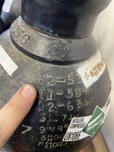 I had a conversation with a local gas distributor one time, and he said for low pressure bottles (C02 was mentioned specifically, but idk about n2) there is no age limit on bottles, they get tested every year, and if they pass the get recertified and kept in circulation. He said the oldest one he saw was from the 1890s