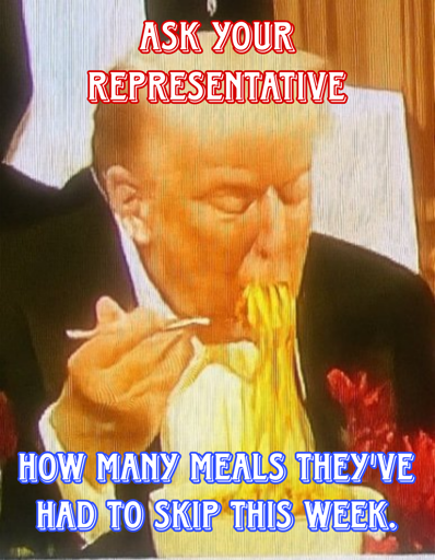 Uh … Well, it’s not gonna help your opinion of him any but that is a shot of our glorious leader eating dinner with the British Royal family. 🫠💀