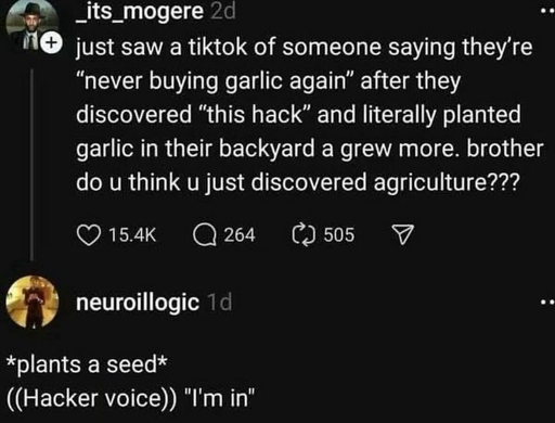 SnokenKeekaGuard@lemmy.dbzer0.com to Lemmy Shitpost@lemmy.world · 1 year agoWait until they find out about chickens!lemmy.dbzer0.comimagemessage-square1linkfedilinkarrow-up12arrow-down10 cross-posted to: Memes@lemmy.dbzer0.com