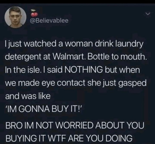 Remember, if you see someone drinking laundry detergent, no you didn’t.
